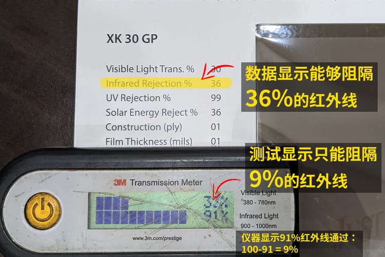 ...如果你要最准确的隔热膜数据,那么你可以要求商家为你的隔热膜做Transmission Meter Test 或者 BTU meter test