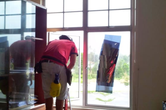 这个时候你就需要拆除原本的隔热膜...注意!!拆除原本的隔热膜不容易...因为热晒的关系隔热膜和强胶就会溶解在你家玻璃...